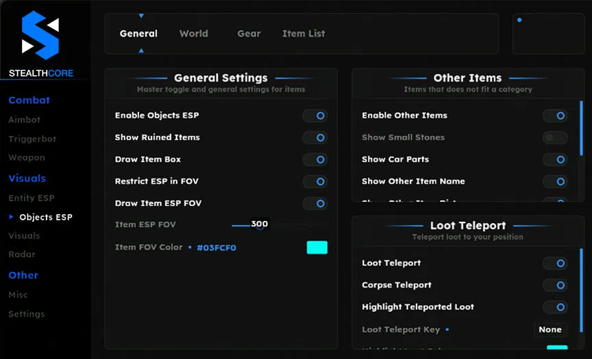 - Restrict ESP (Draw items in FOV)